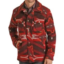 Panhandle Men’s Powder River Red Aztec Jacquard Commander Jacket