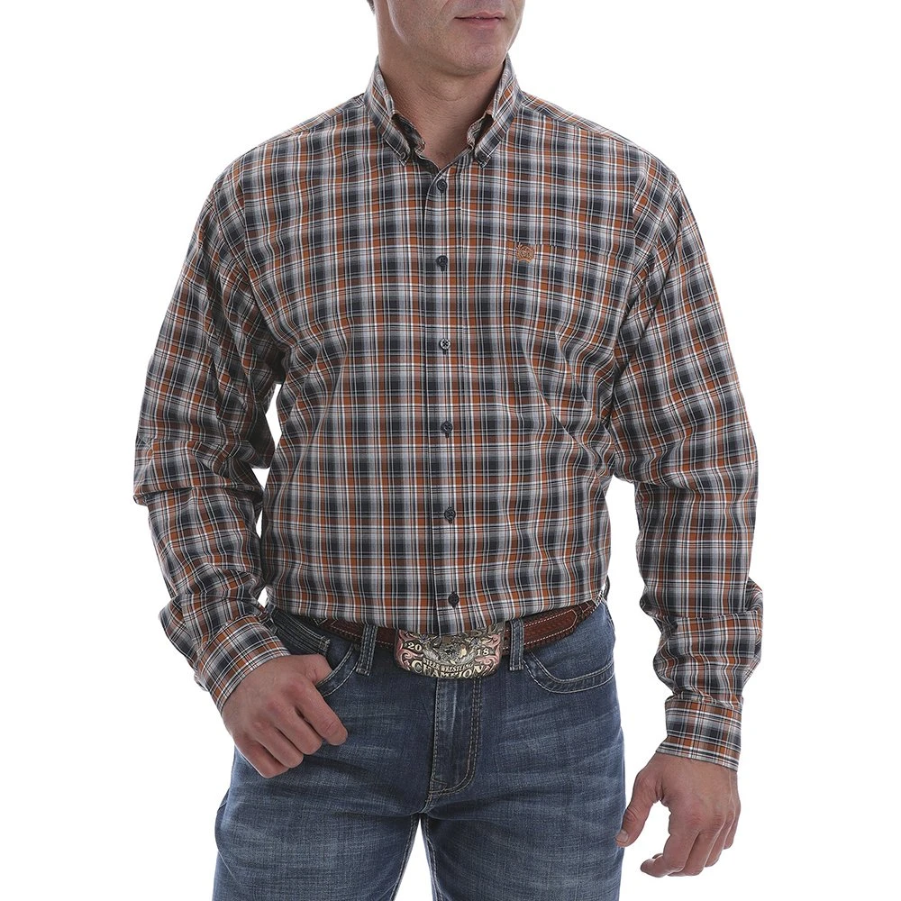 Step out in style and comfort in our khaki/navy plaid shirt!