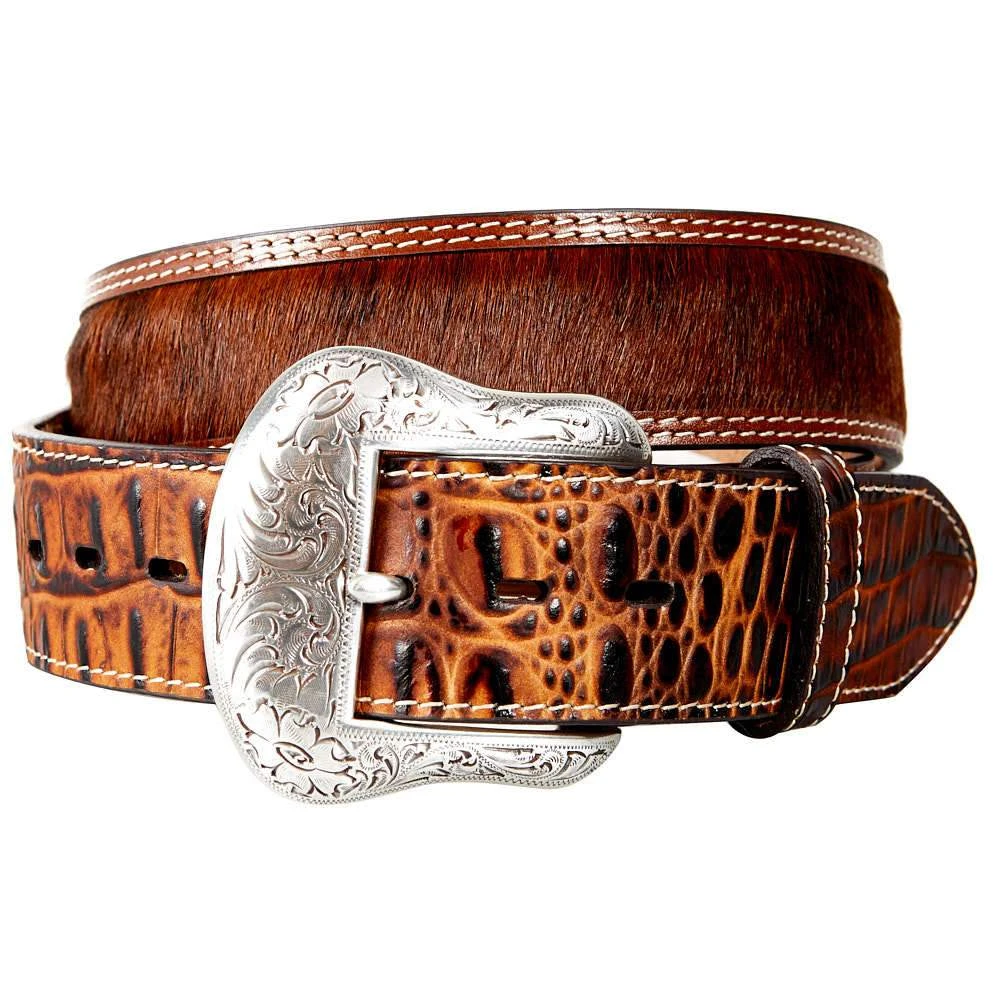- Hair On Hide Belt with Crocodile Edges