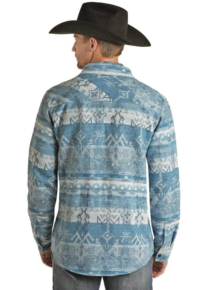 Great looking Shacket from Panhandle Slim featuring a blue Aztec design.