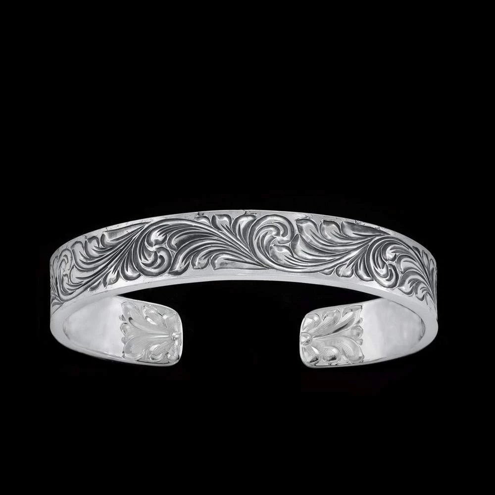 The Vogt Gentleman’s Cuff features a handsomely engraved 1/2″ solid sterling silver band. Designed tough to keep up with the working man, this cuff measures 6 1/2″ from end to end.