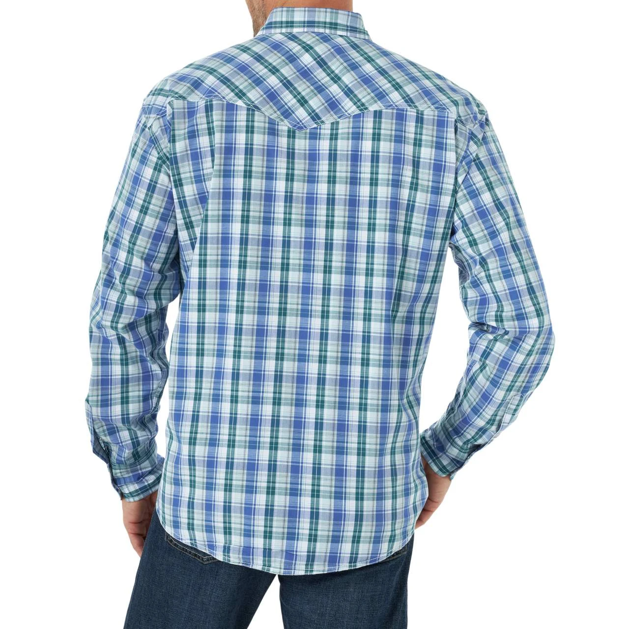 Add some style to your wardrobe in our blue plaid, advanced comfort, snap shirt by Wrangler 20X.