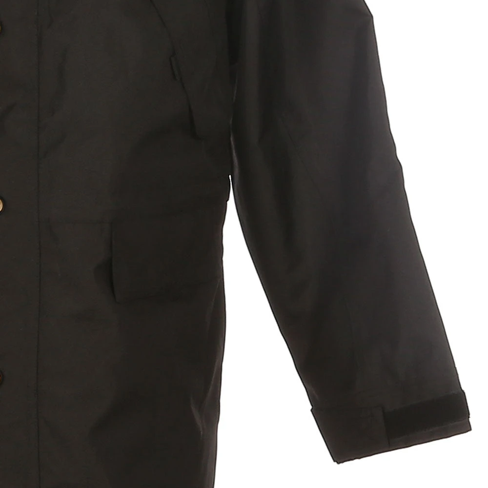 - Hand pockets at the waist with hook and loop closure flaps